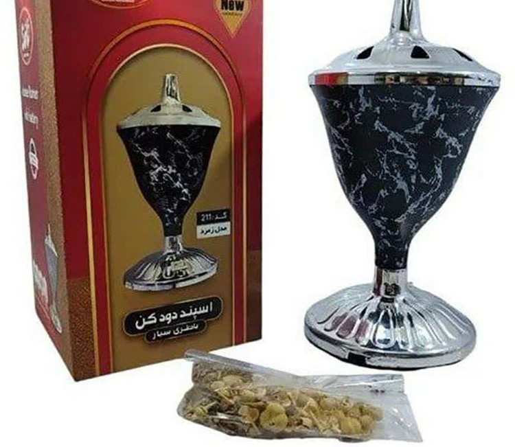 دستورالعمل استفاده:1- محل نصب باتری در زیر محفظه اسپند قرار دارد. لطفا پس از نصب باتری، قطبیت مثبت و منفی آن را کنترل کرده واز نصب صحیح آن اطمینان حاصل کنید. 2- مقداری اسپند را در داخل محفظه فلزی دستگاه قرار دهید. 3- کلید دستگاه را روشن کنید. 4- با استفاده از کبریت یا فندک ، اسپند های داخل محفظه را به آرامی روشن کنید.