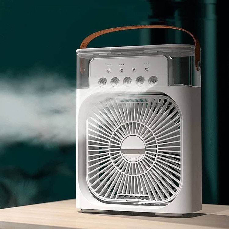 ✨پنکه مه پاش رومیزی مدل Air Cooler Fan فاقد باتری است و به صورت مستقیم توسط آداپتور و کابل USB Type C به برق متصل میشود. دارای پنج نازل مه پاش قوی و قابلیت تنظیم تعداد مه پاش ها است. دارای پد خوشبو کننده و تایمر جهت خاموشی خودکار می باشد. فن دستگاه قابلیت تنظیم دستی و چرخش ۳۶۰ درجه در یک جهت را دارد و محافظ فن دارای قابلیت باز و بسته شدن جهت نظافت پره ها میباشد. ترجیحا از آب تصفیه شده درون دستگاه استفاده شود جهت جلوگیری از رسوب.
