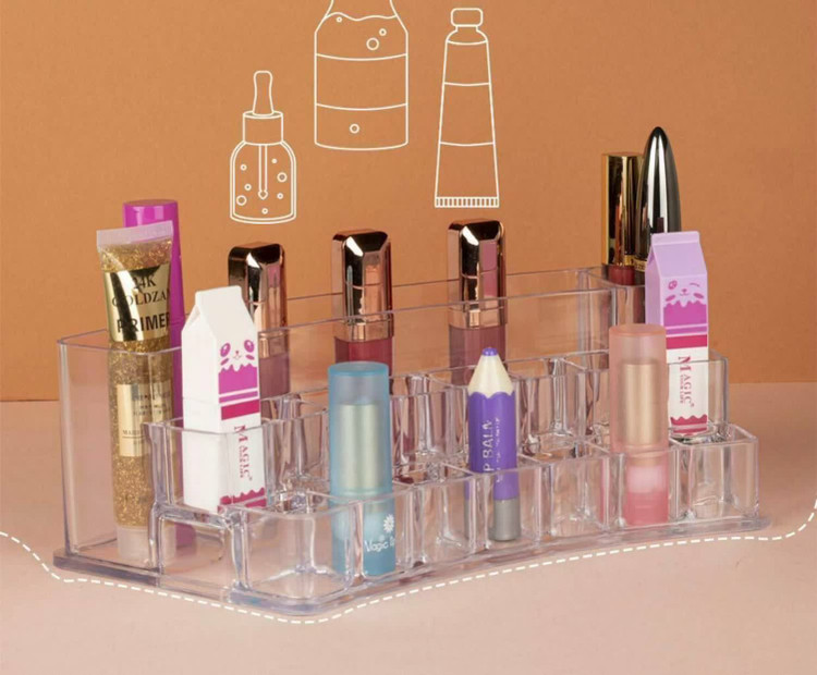 ✅دارای ۱۵ خانه برای رژ و لاک، ۳ خانه برای براش، مداد، برس و...